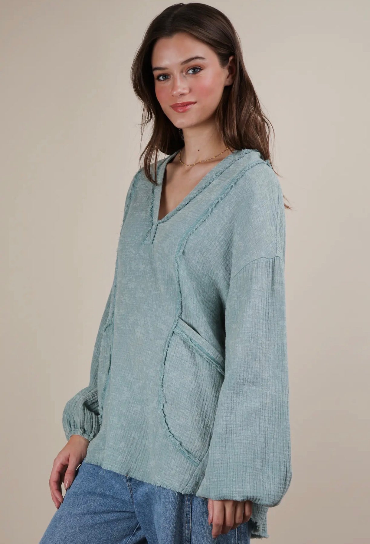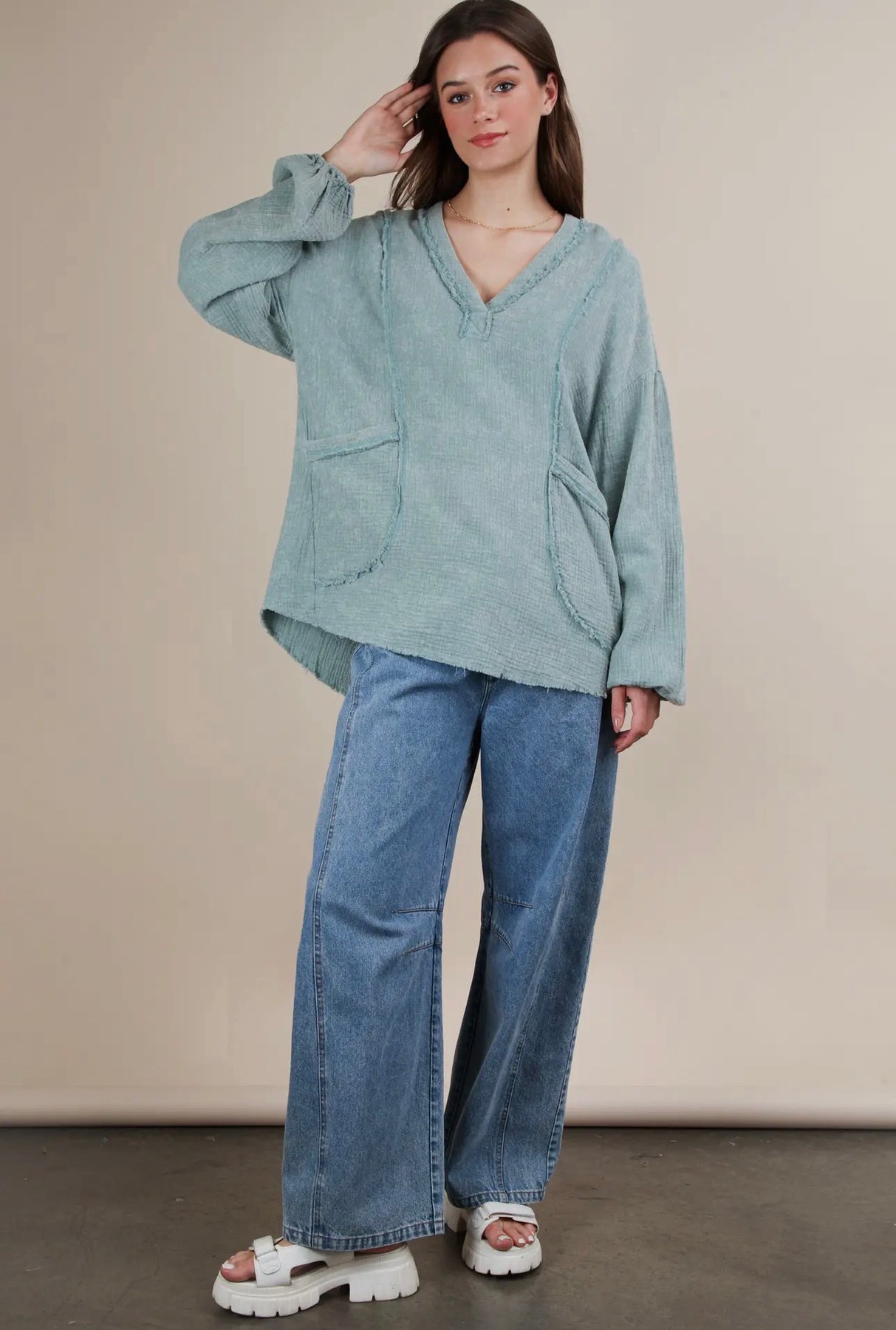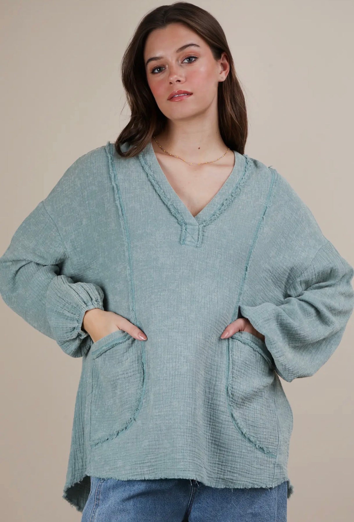 Model is wearing size large. Oversize fit.
