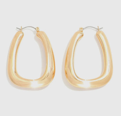 Chunky Metal Tone Rectangle Hoop Earrings - Approximately 1" D