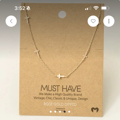 This trending necklace adds a modern rose gold side cross pendant necklace style. Witness the transformative power of accessories as this piece effortlessly redefines your fashion narrative. This trending necklace approximately measures (Inches): L: 16 100% BRASS