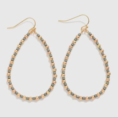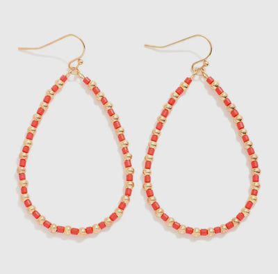 Beaded Teardrop Drop Earrings - Approximately 2" L
