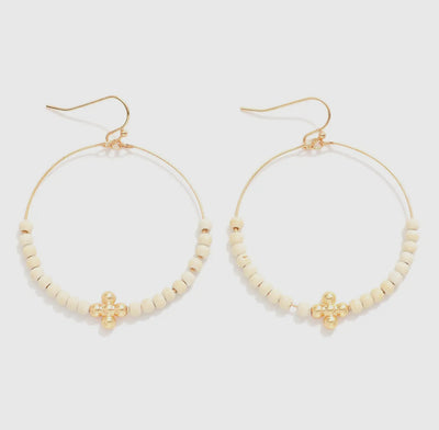 Natural/Gold Beaded Hoop Earrings