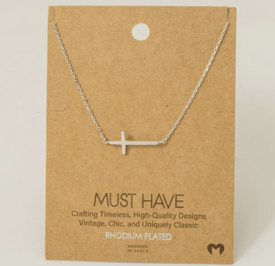 This trending necklace adds a modern silver side cross pendant necklace style. This trending necklace approximately measures (Inches): L: 16 100% BRASS