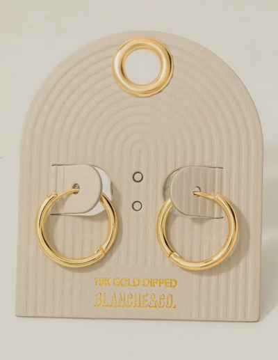 This pair of hoop earrings adds a modern gold dipped thin tube hinge style. Savor the allure of detailed craftsmanship in this exquisite pair of hoop earrings. 100% BRASS